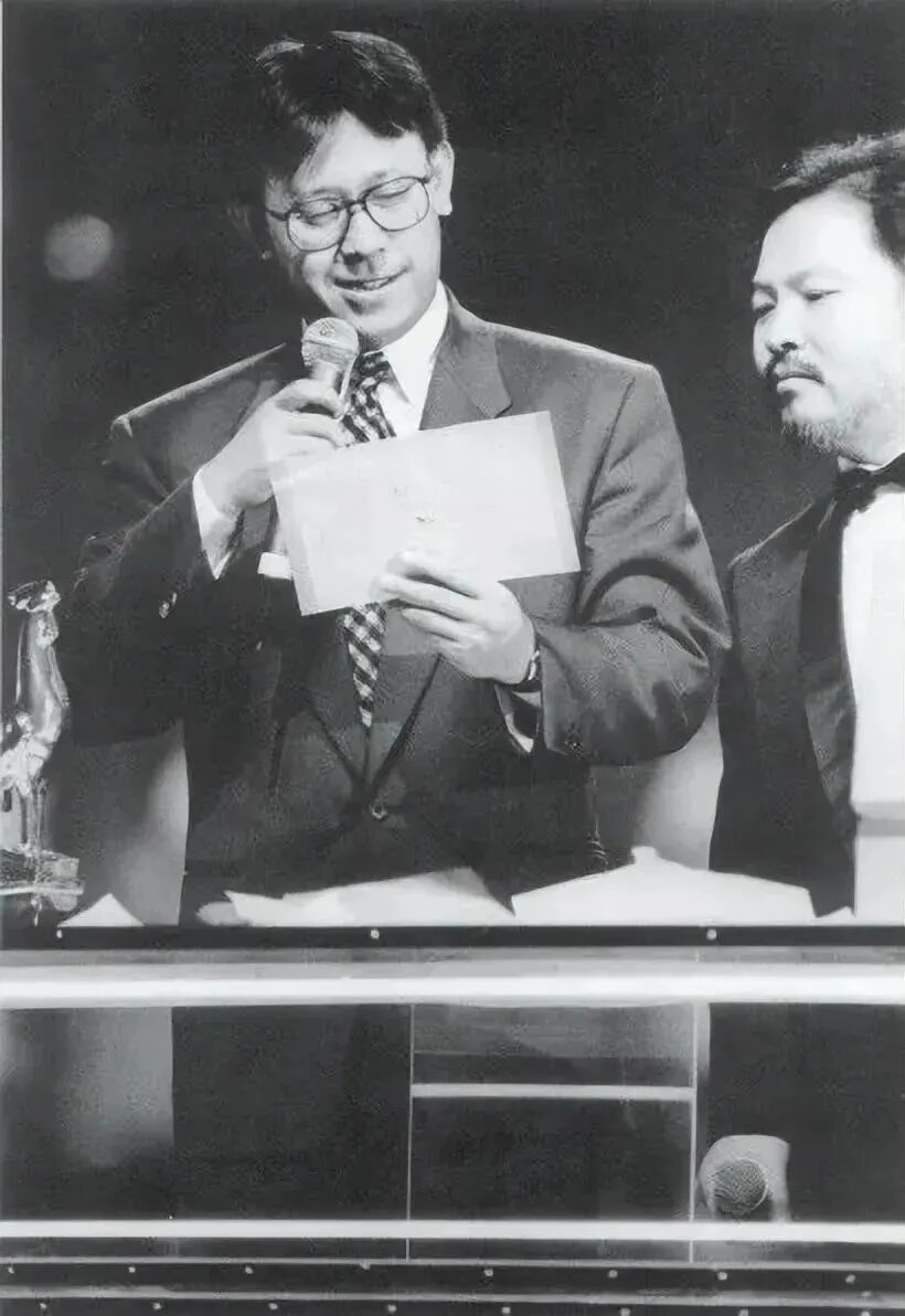 姜文因主演《芙蓉镇》、《红高粱》和执导《阳光灿烂的日子》而成为一线明星,这是他在电影活动中开奖的镜头。
