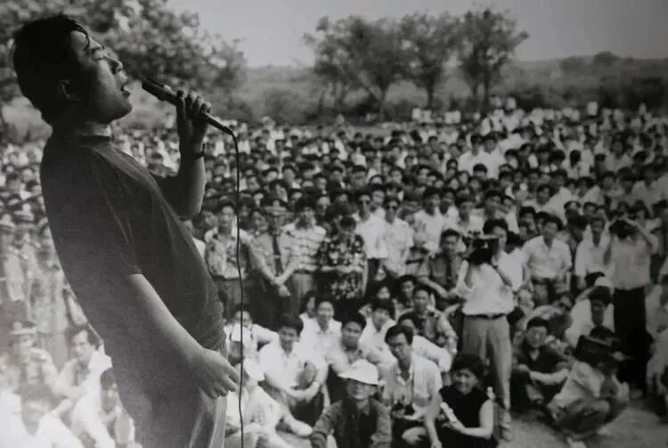 李雪健凭借主演电视剧《渴望》和电影《焦裕禄》而走红,但他始终和观众心连心,这是他在为观众演出时现场唱歌的场景。