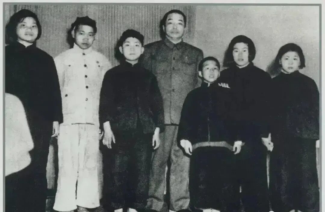 这是60年代初,刘少奇一张珍贵的全家福,照片中的人分别是他的妻子王光美,女儿刘亭亭、刘潇潇、刘平平等人,他一共有九个子女,尽管工作繁忙,但是仍然非常注重对于子女的教育,子女们在他的严格要求下,最后都成了栋梁之材。