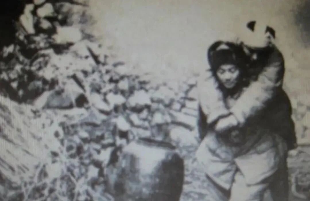 敌机在继续轰炸,在周围一片爆炸中,解秀梅背着比她重得多的李永华,艰难地走出危险区。