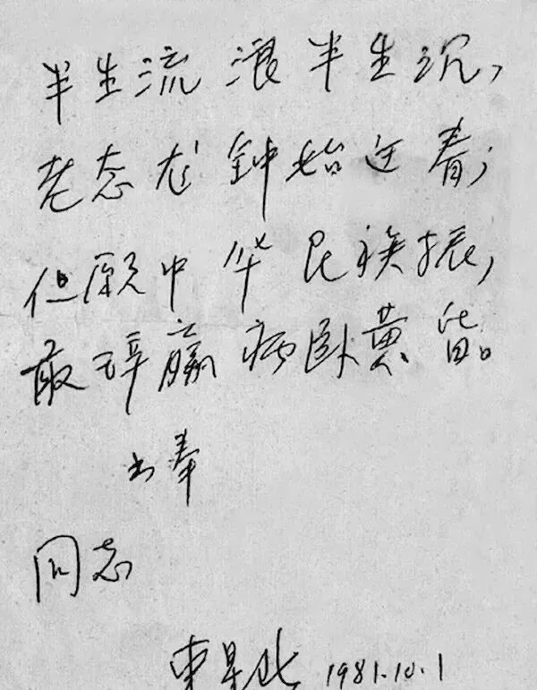 1979年8月,山东大学对父亲的问题进行了复查,12月,经山东省委批准,20多年的冤案得到了彻底平反,恢复名誉。父亲写诗言志,“半生流浪半生沉,老态龙钟始遇春,愿得中华民族振,敢辞羸病卧黄昏。”我们全家都希望他整理和出版于1965年写成的《狭义相对论》,但他不干,说没有空,先将《狭义相对论》放一放,我现在教教学生、搞搞研究,等我躺在床上不能动了再来弄,但最后还是没有完成。