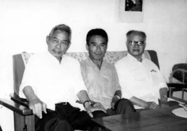 1982年,王淦昌、束星北及国家海洋一所所长曾荣(中)