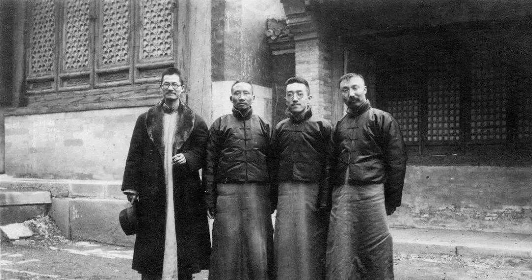 图 | 1920年,蔣夢麟、蔡元培、胡適、李大釗(由左至右)在小院門口合影