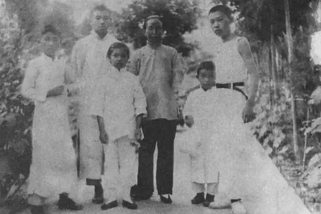 1918年,梁思永、梁思达、母亲李夫人、梁思庄、梁思成、梁思忠(从右至左)