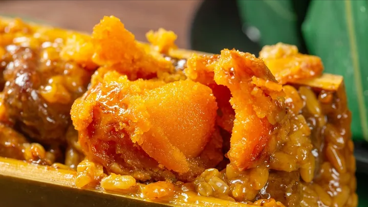 馅料,是精心甄选的猪后腿肉、咸鸭蛋黄、细腻豆沙等没有人能拒绝黄滋滋冒油的咸蛋黄和酱香四溢的农家土猪肉,油脂香与竹香在糯米中和解。整个竹筒粽油而不腻,香嫩无比,是不少人的味蕾新宠。