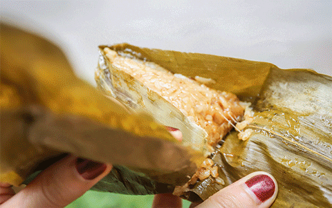 烧肉粽,重点在于“烧”字,也就是要趁热吃。拨开粽衣的那一刻,香气扑鼻,吃时配上蒜泥、花生酱、辣酱等调料,更是香甜美味,没人能抗拒这样的诱惑!