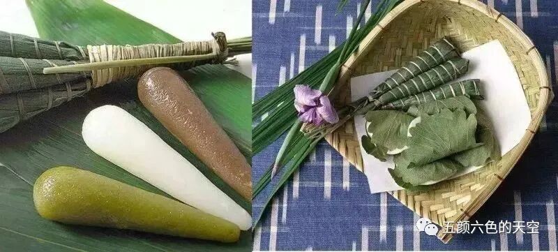 粽子在日本古代称为“茅卷”,呈圆锥形。最初是将粳米蒸熟捣碎成年糕状后用茅叶包裹,再如水煮熟。后来改用菖蒲叶、竹叶、芦苇叶等包裹,制作方法也逐渐多样化。并且日本粽子使用的食材是磨碎的米粉而非糯米。