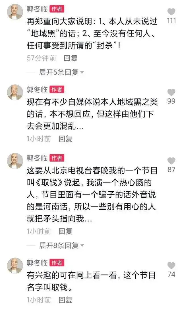 郭冬临也公开发文,表明自己从未歧视过河南人,这只是小品里别人的一句台词。