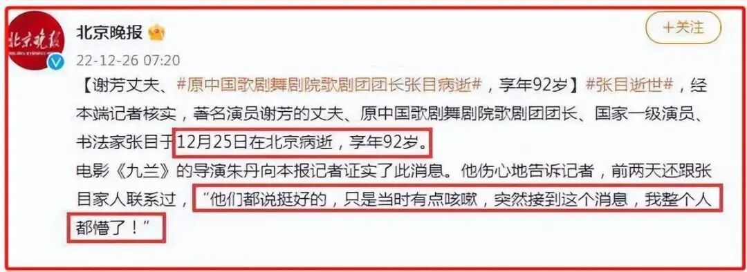 然而就在去年12月25日,张目在北京病逝,享年92岁。