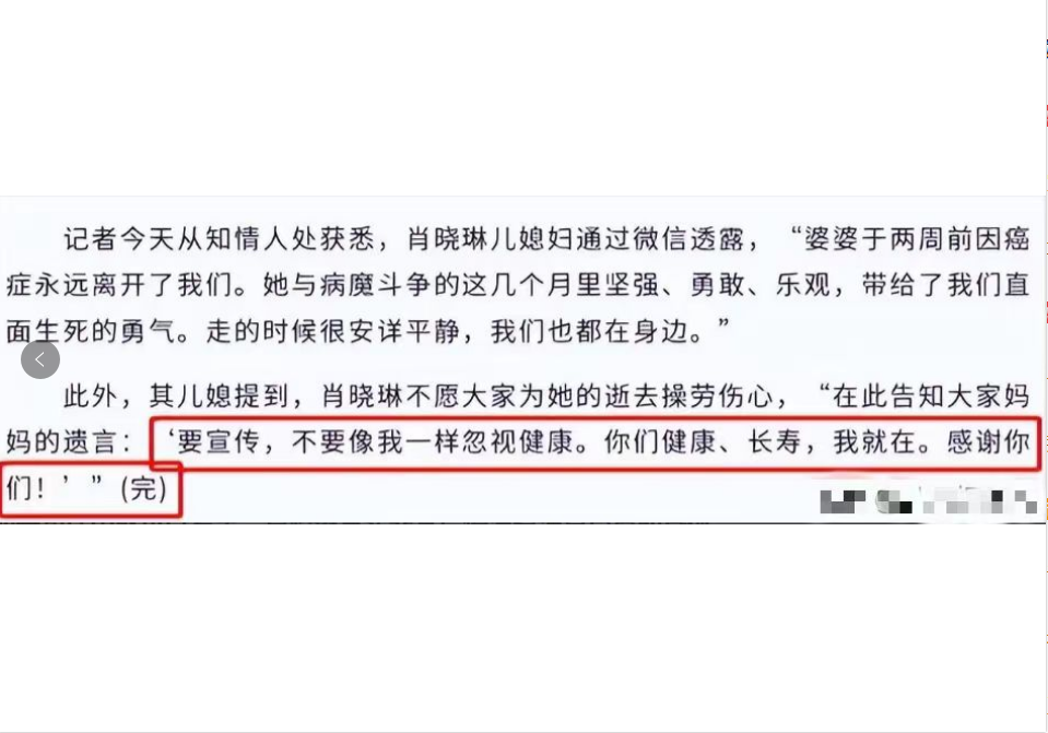 因为在感到自己生命即将结束时,不愿打扰他人的肖晓琳,悄无声息地留下了一封遗书。