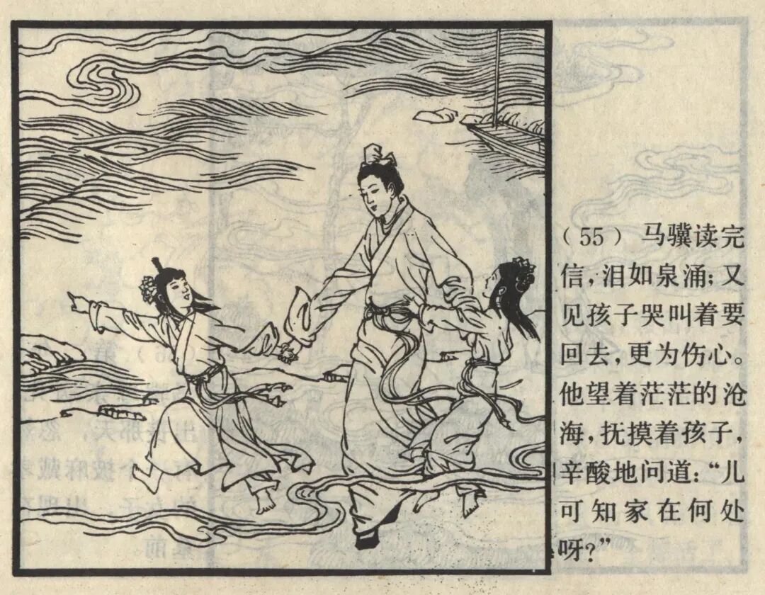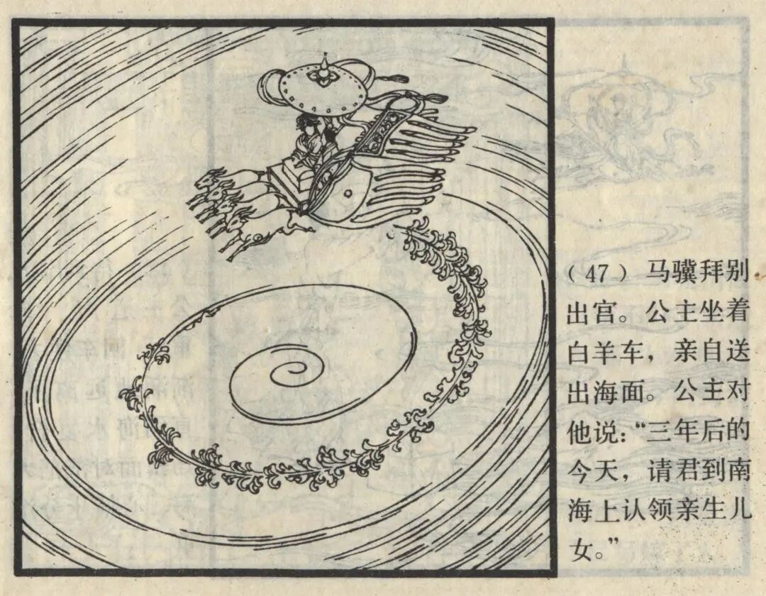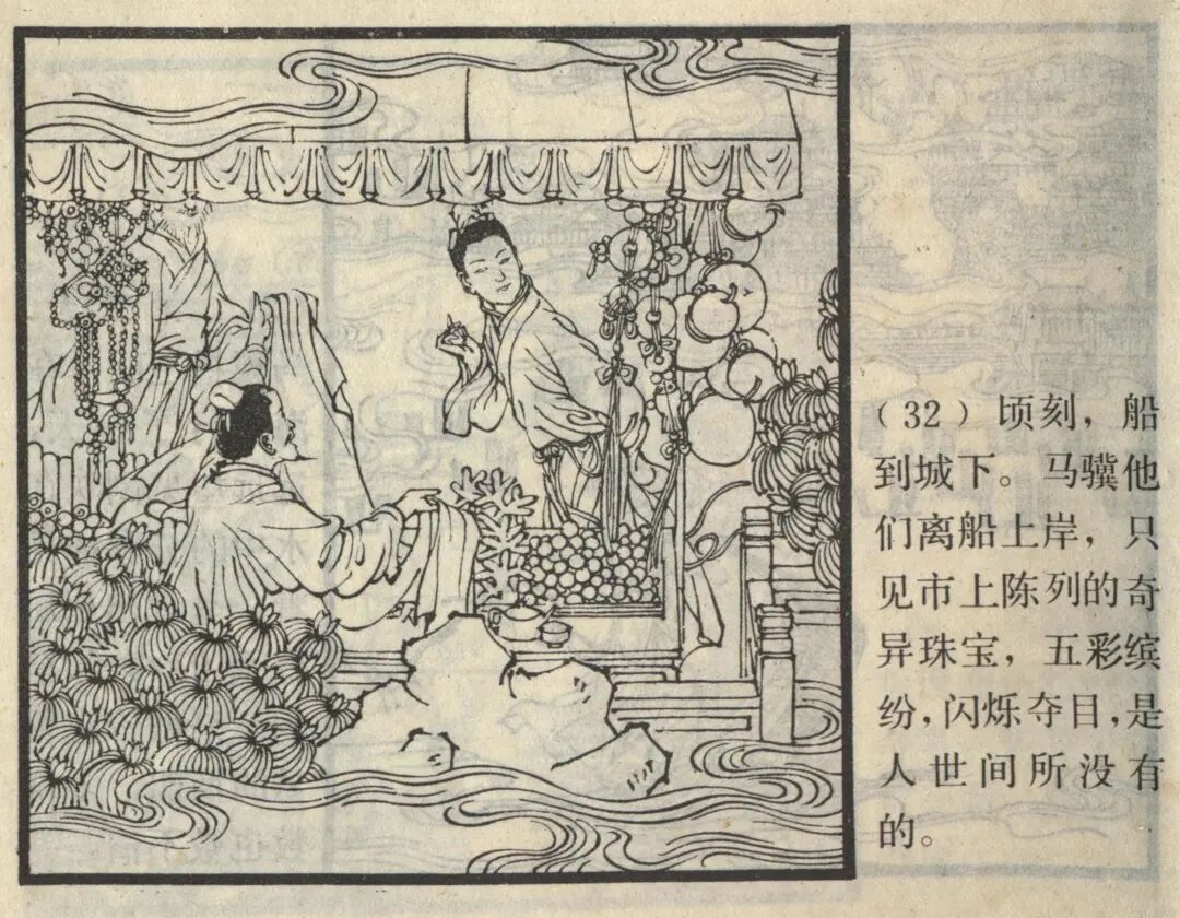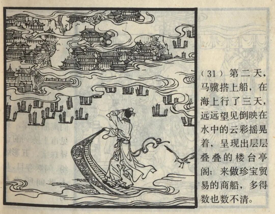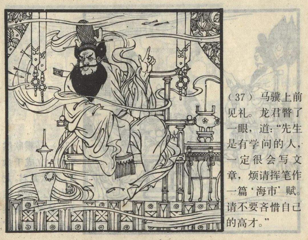 这是聊斋志异中的一则故事描写商人的儿子马骥,出海去营生,遭到台风袭击,只身漂流到罗刹国那里人长相极怪,以美为丑,反丑为美马骥又来到海市,被龙王招为驸马,生有一男一女:后因仙尘相隔,龙女不能来到人间,马骥遂与儿女相依为命。