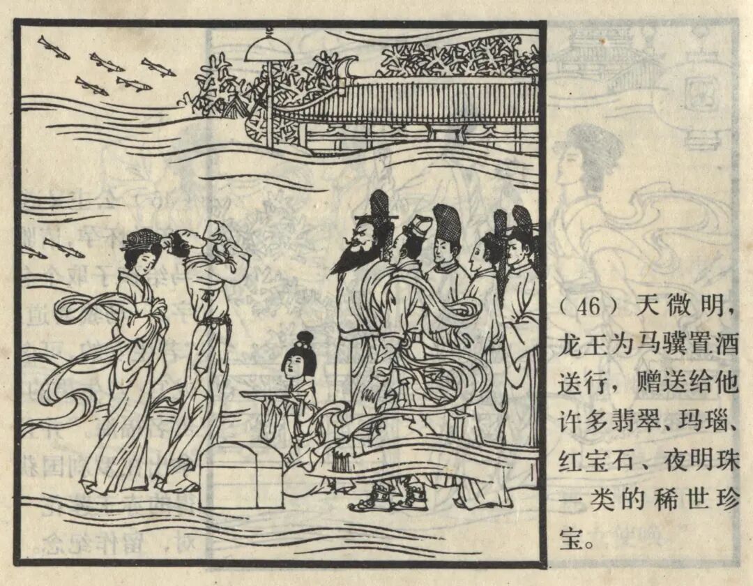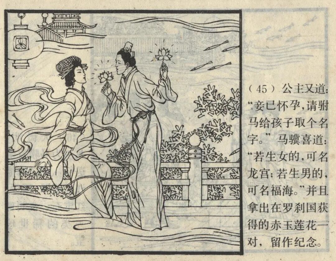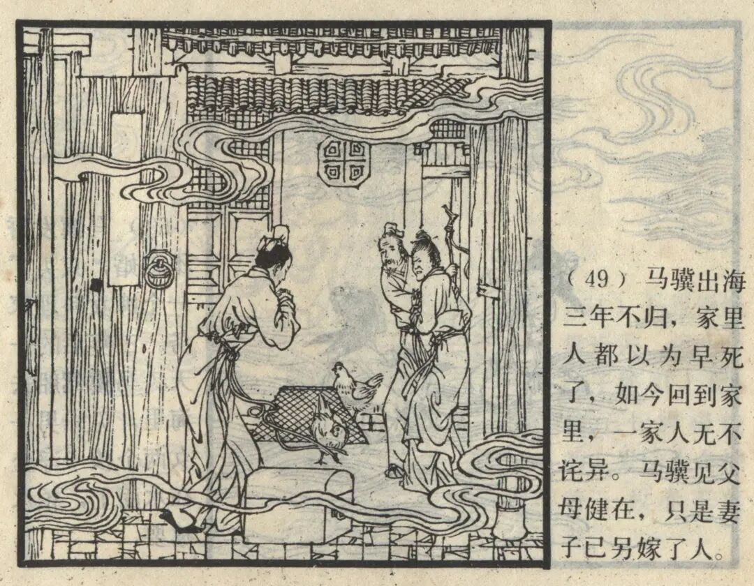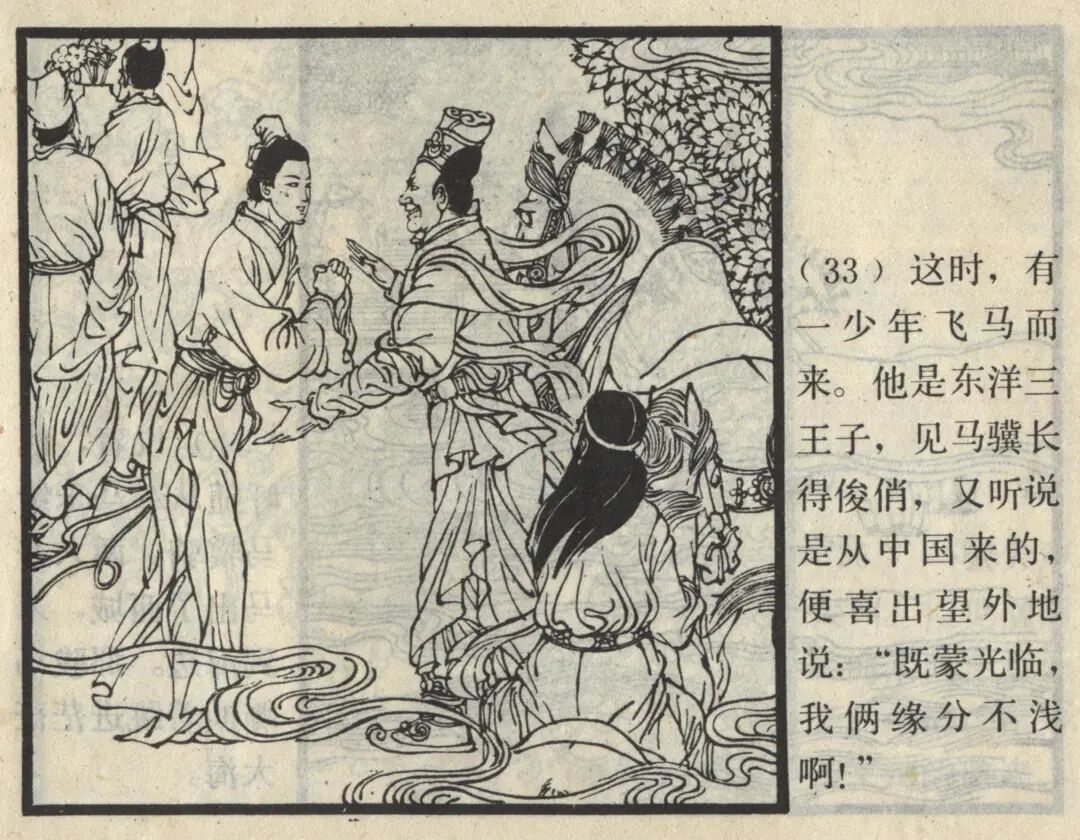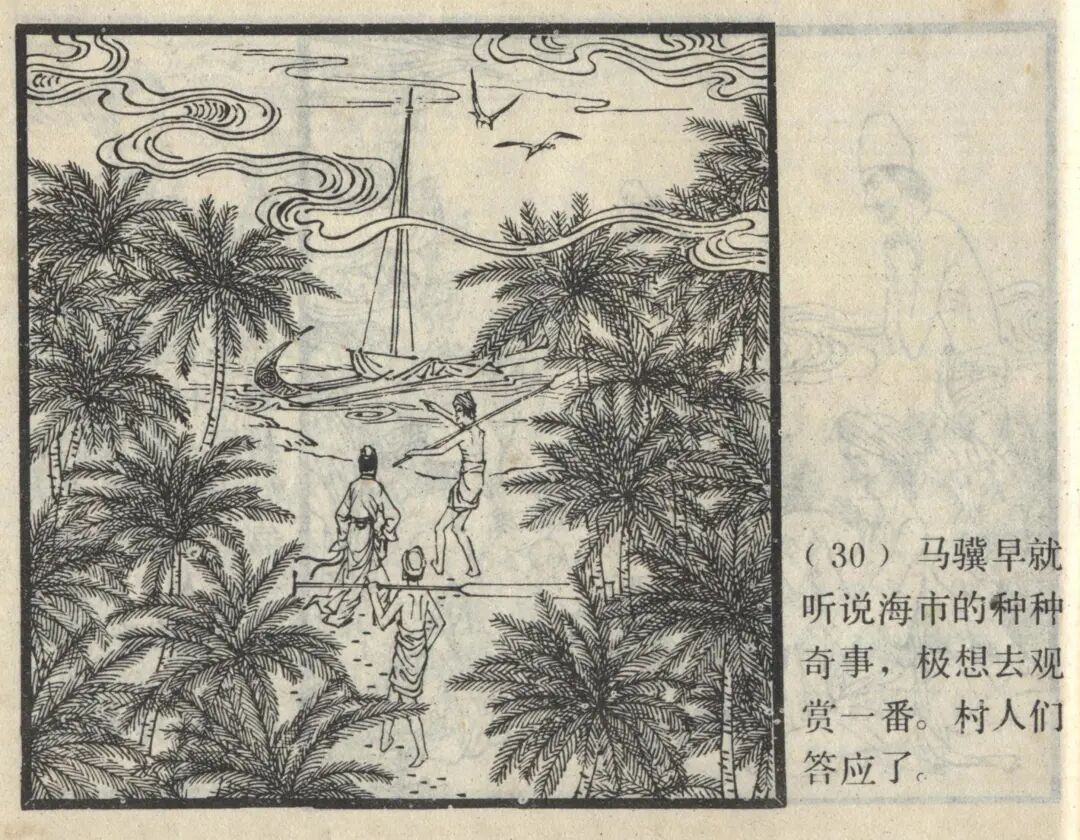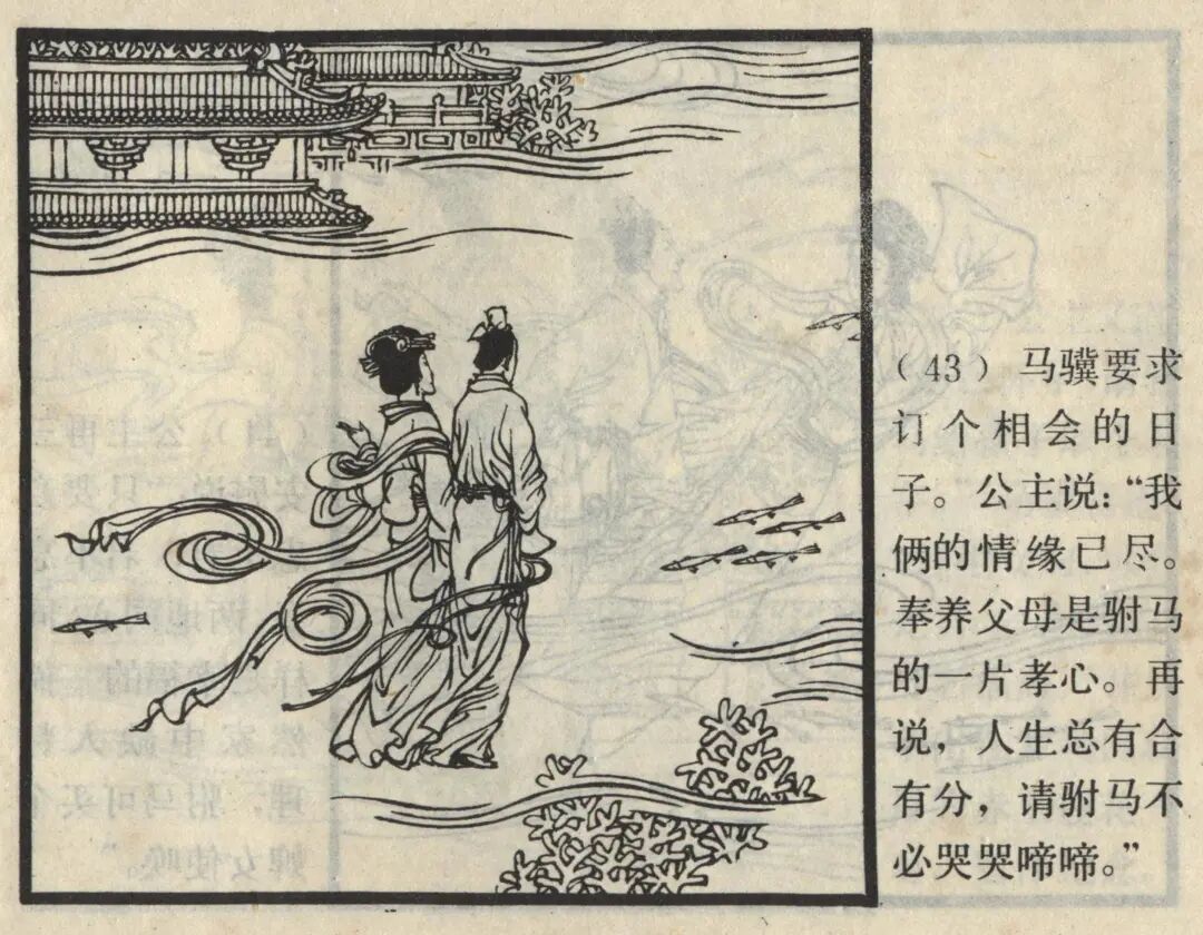 这是聊斋志异中的一则故事描写商人的儿子马骥,出海去营生,遭到台风袭击,只身漂流到罗刹国那里人长相极怪,以美为丑,反丑为美马骥又来到海市,被龙王招为驸马,生有一男一女:后因仙尘相隔,龙女不能来到人间,马骥遂与儿女相依为命。