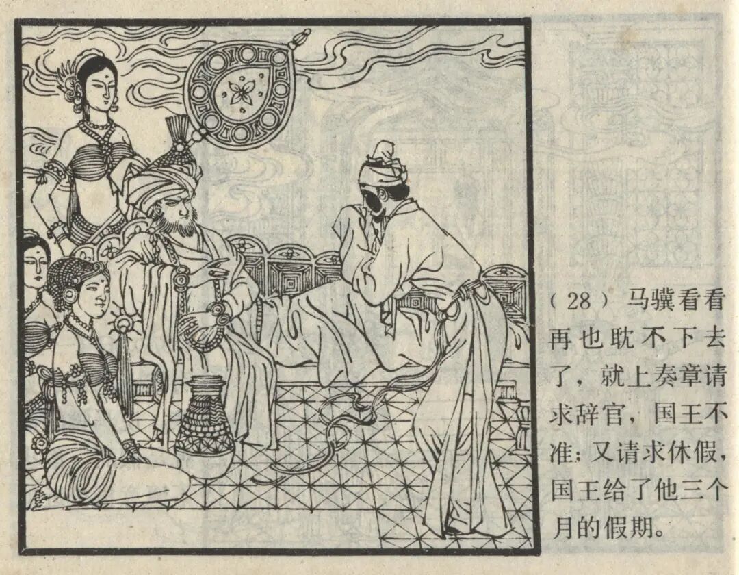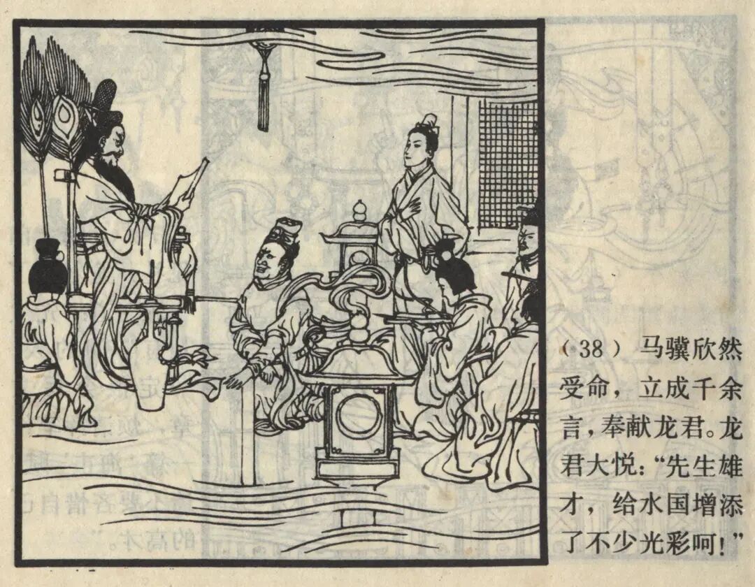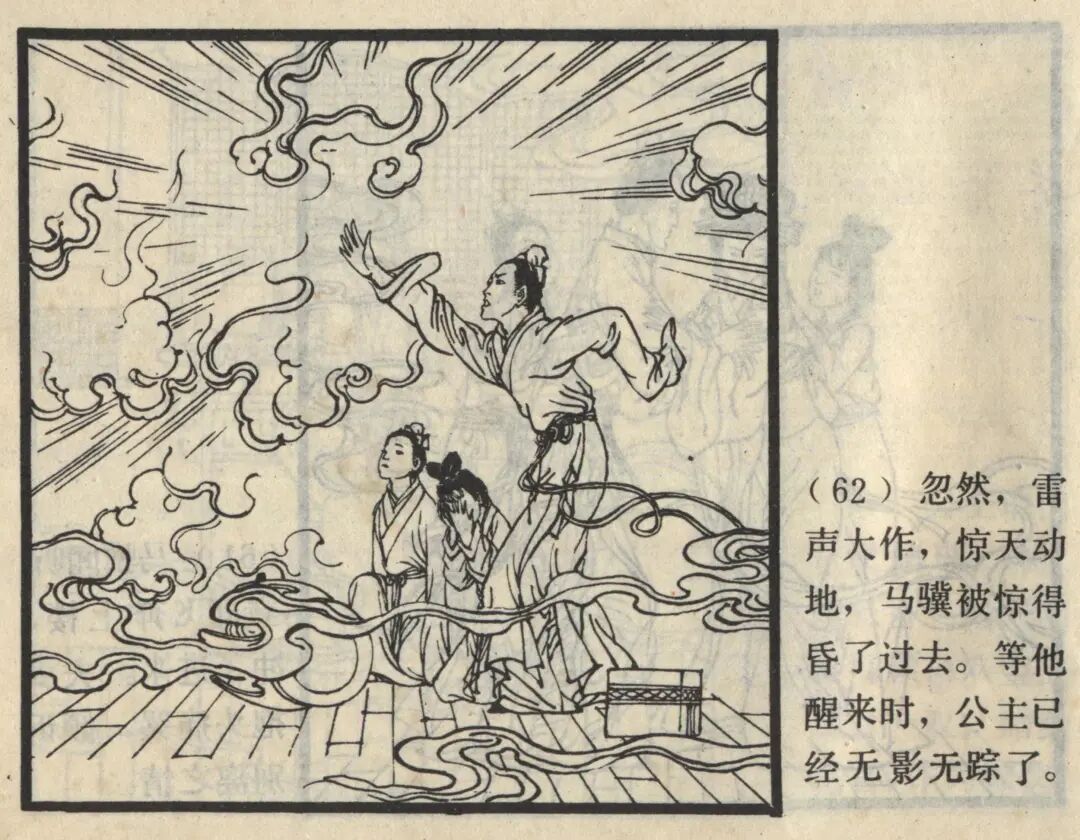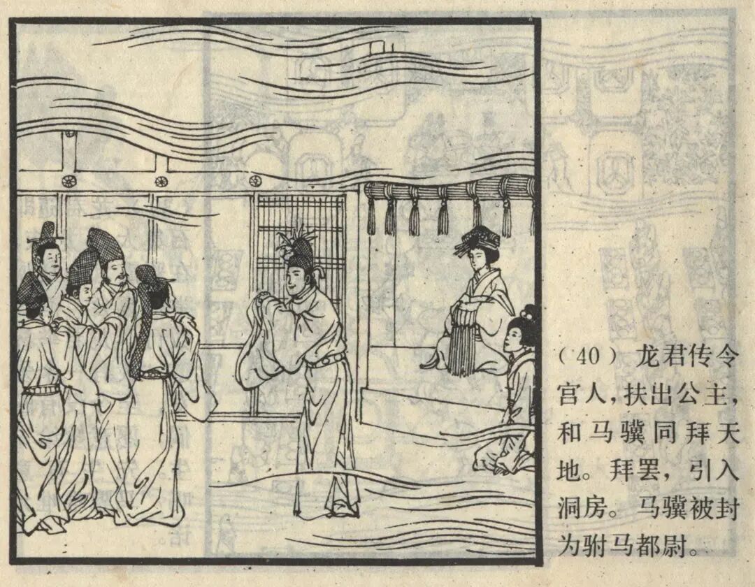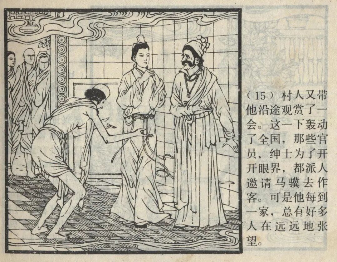 这是聊斋志异中的一则故事描写商人的儿子马骥,出海去营生,遭到台风袭击,只身漂流到罗刹国那里人长相极怪,以美为丑,反丑为美马骥又来到海市,被龙王招为驸马,生有一男一女:后因仙尘相隔,龙女不能来到人间,马骥遂与儿女相依为命。