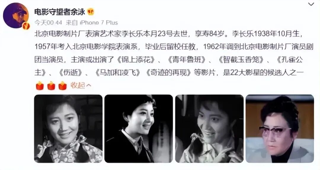 不少影迷纷纷发文悼念李长乐,不舍这位老艺术家离去,也深深缅怀她。