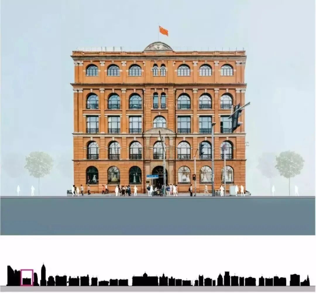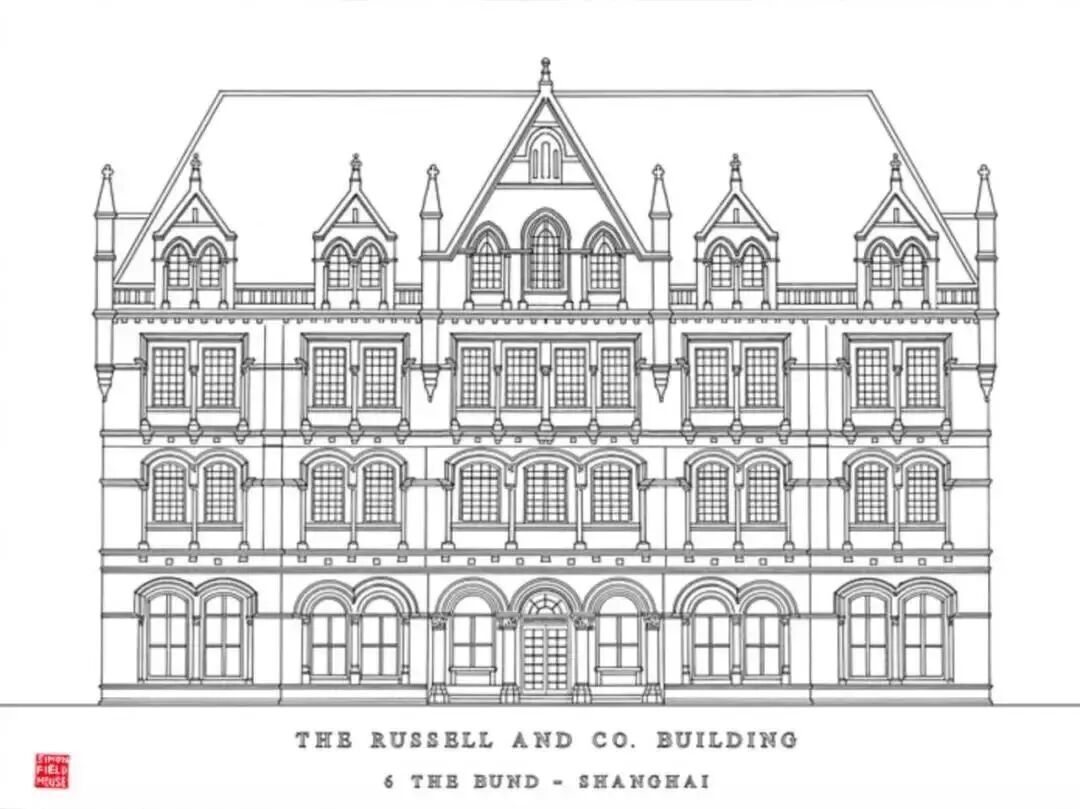 建筑由司各特设计,安妮女王复兴风格,共6层,清水红白砖的立面在灰色的外滩背景下格外生动夺目。顶部东侧南北各有一座造型迥异的巴洛克式塔亭,室内还安装有两部国内最早的电梯。