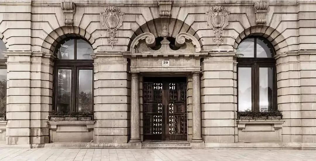 矩形建筑由巨大的古典石柱环绕,雕饰简朴却独具特色。立面设多根变体爱奥尼克式立柱,柱头涡卷改为传统特色的「回纹图案」,搭配平拱窗框气势非凡,赋予建筑欧洲古典主义风貌,高贵典雅。