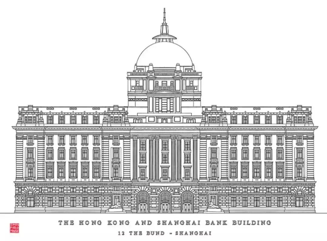 1923年建成的「汇丰银行大楼」占据外滩10-12三块地皮,由「公和洋行」设计。宏大的体量融合精美的设计,被誉为「从苏伊士运河到白令海峡间,最壮观的建筑」。