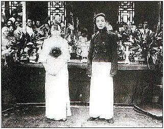 与小弟分别的日子,终于还是来了。17岁的孔德懋就要出嫁了,未婚夫是北京柯劭忞的小儿子柯昌汾。柯邵忞是清朝著名的历史学家,前清翰林,清史馆馆长,教过溥仪读书。大姐走了,如今二姐又要走了。只有15岁的小弟德成,把孔府里最贵重的两对传家宝拿出来分别给两个姐姐做“嫁妆”:一对传了千百年、大如写字台一样的楷木雕如意,上面精工雕刻着“文王百子图”;一对镶满了钻石珍珠的大金钟。