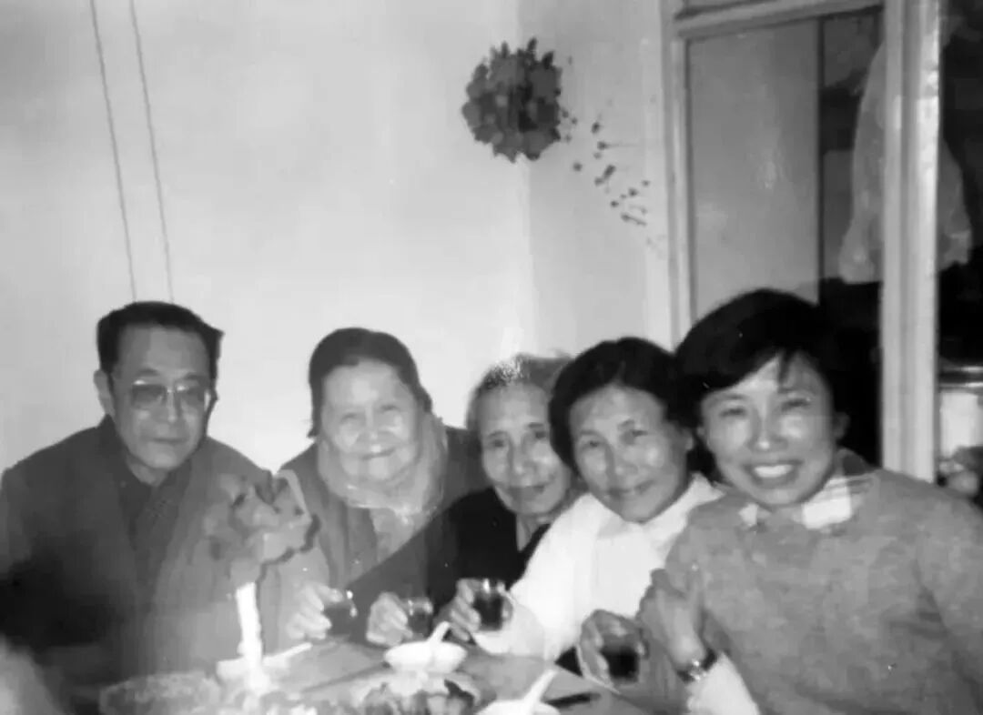 80年代末在郑秀家合影。左一杨村彬、左二王元美、中郑秀、右一万昭、右二万黛