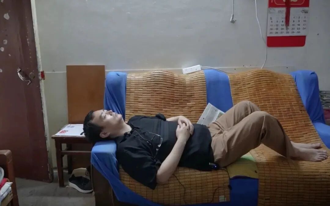 白天他照顾妈妈,负责买菜,每天买妈妈喜欢吃的虾,饭后洗碗,再给老妈洗脸。