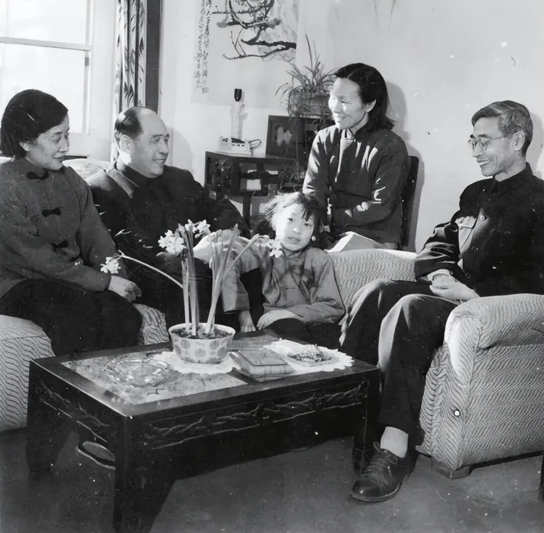 1960年代初,李佩在中关村家中待客(右起:郭永怀、李佩、女儿郭芹、汪德昭院士及夫人
