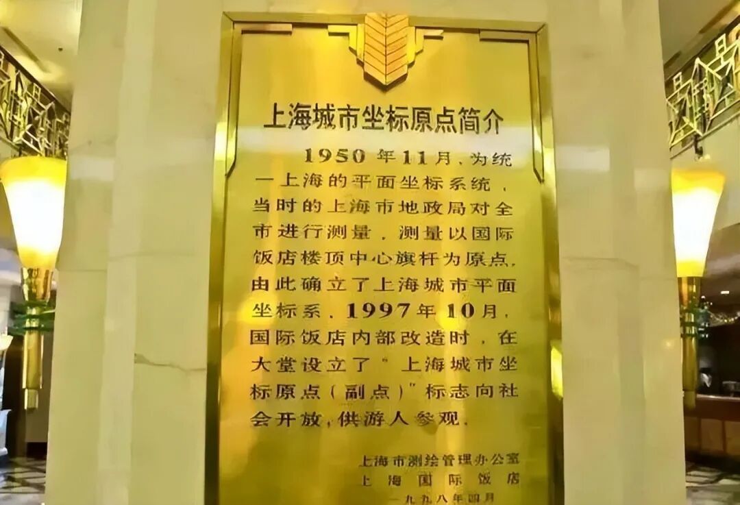 在饭店的一楼有一个坐标点,注明这里是上海坐标原点;也就是说,这里才是真的上海市中心!