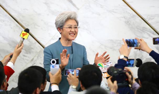 在外任职期间,无数次面对挑衅,她都淡然处之。有一次,美国哥伦比亚广播公司记者提问关于中国军费不断增长,增强国防力量的问题。她微笑着,坚定不移且毫不客气地反问:“我们有一个很弱的国防力量,我们就和平了?”