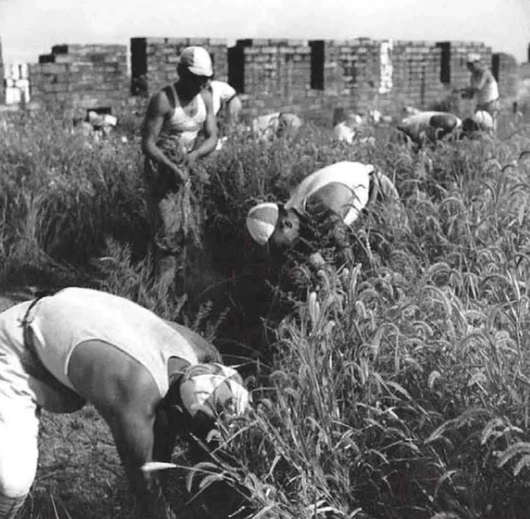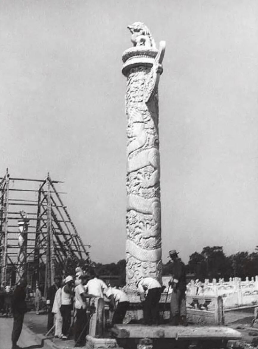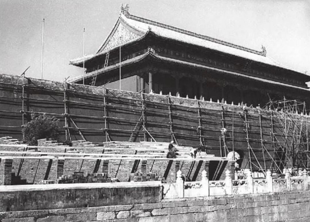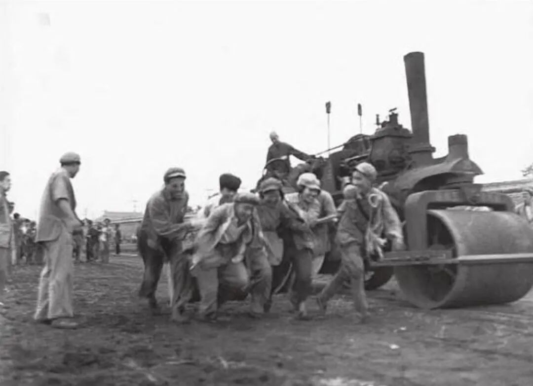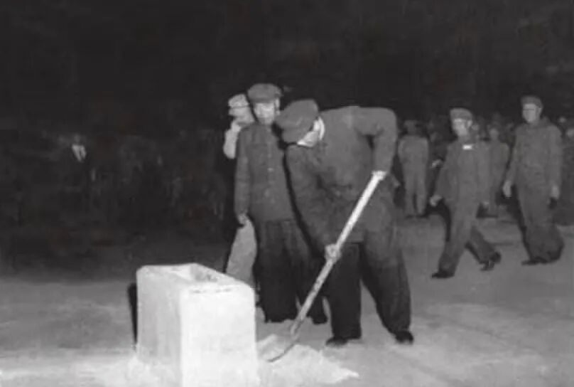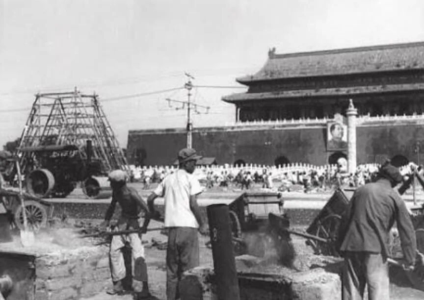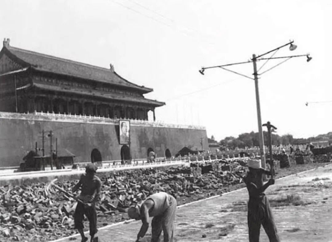 开国大典前,炎热的七八月份,战士们在清除天安门广场周围的杂草。