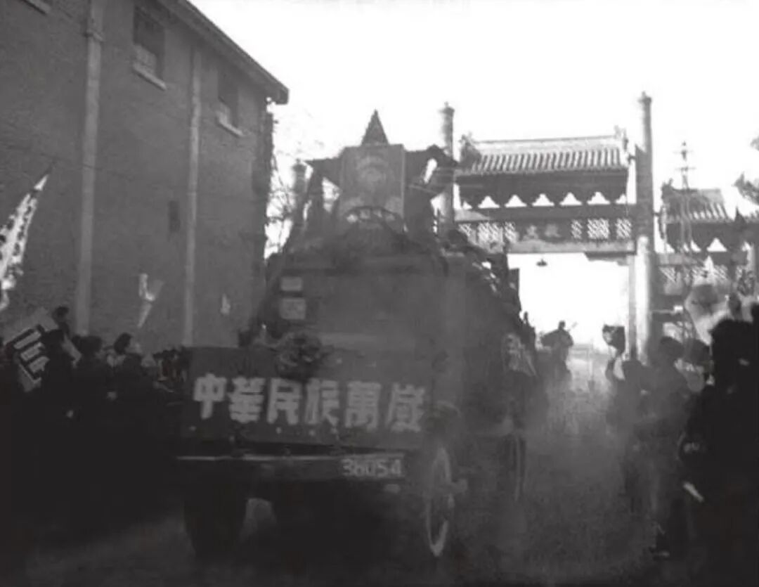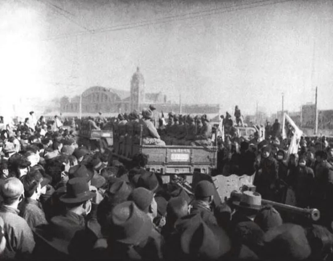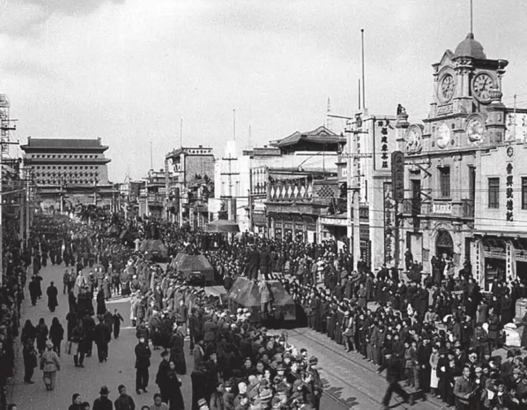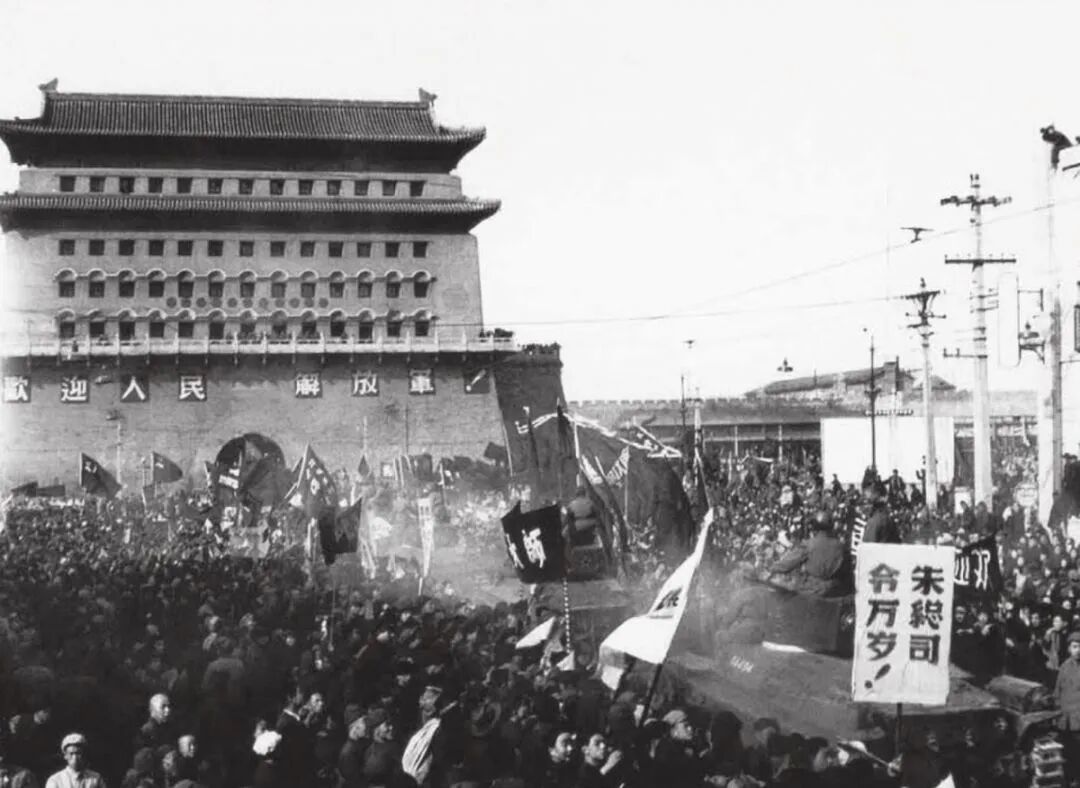 1949年1月31日,北平和平解放。市民欢迎解放军入城。此前,傅作义接受北平和平解放,他的25万国民党部队,陆续出城接受解放军改编。