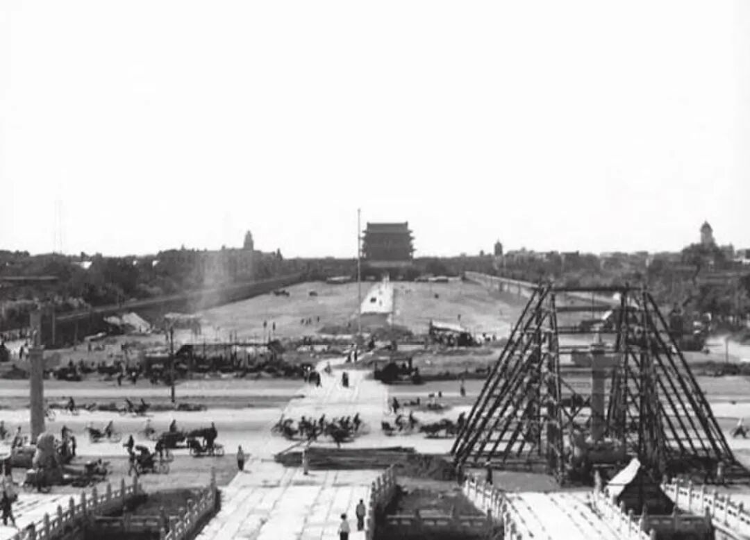 整治广场时,城楼上已经悬挂了毛主席画像。