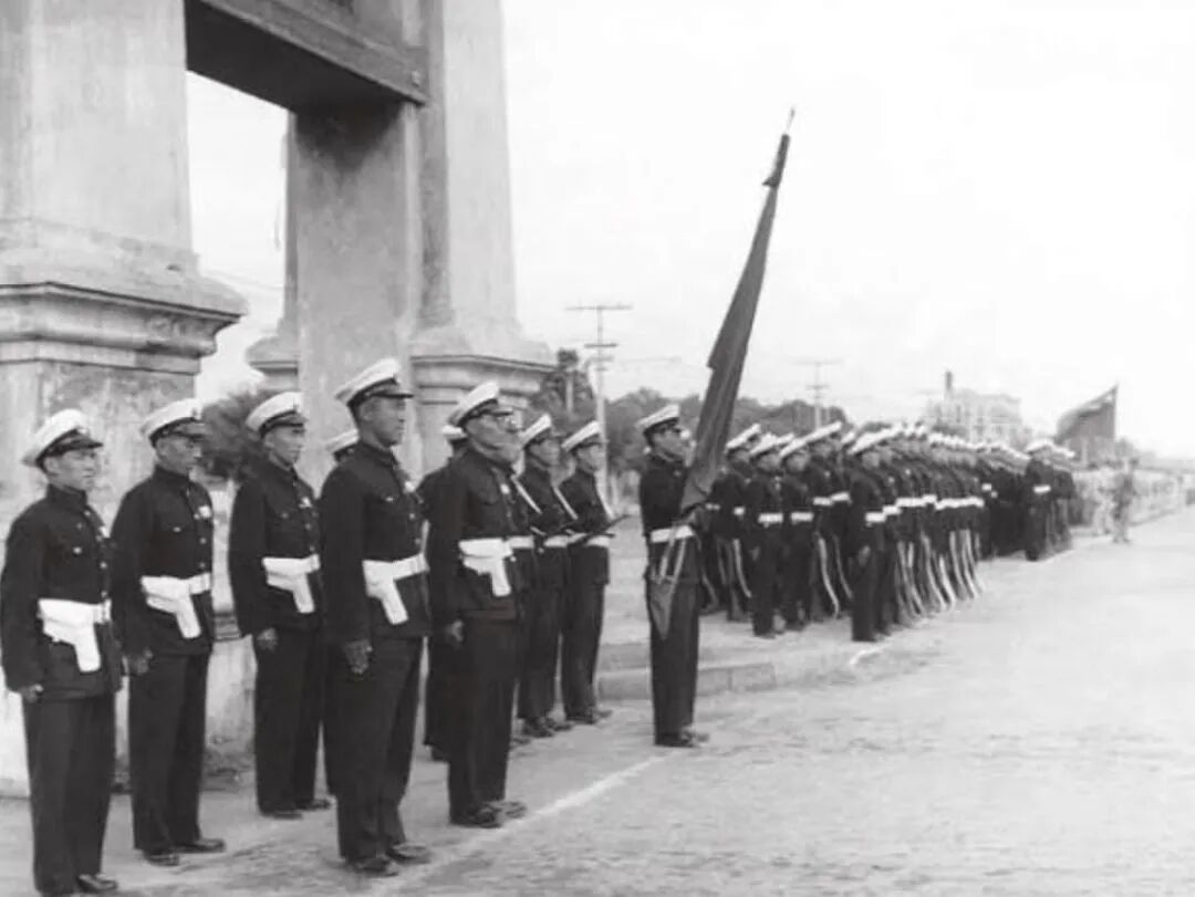 参加阅兵的海军方队。海军是第一支受阅的军队,这支军队由国民党“重庆舰”起义投诚的部分官兵组成。