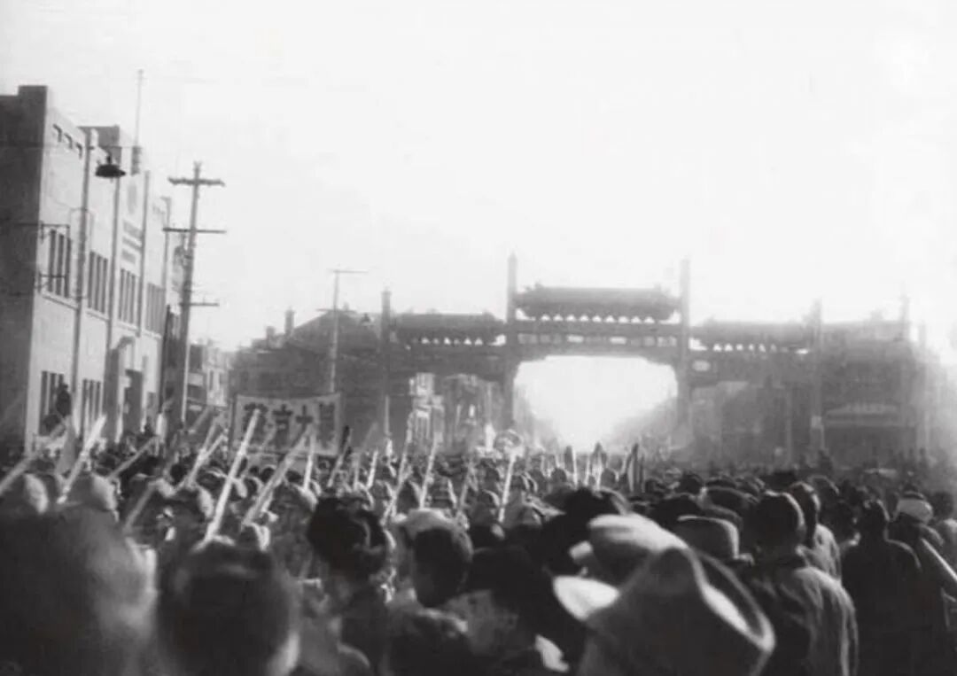 同样是2月3日,这张照片记录的是长辛店铁路职工游行到东交民巷。