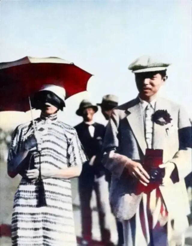 1930年, 东北运动会,张学良拿着相机像个记者,于凤至戴着黑纱撑着遮阳伞,挺会享受的富太太。我才发现,女士打遮阳伞已经有90年的历史了