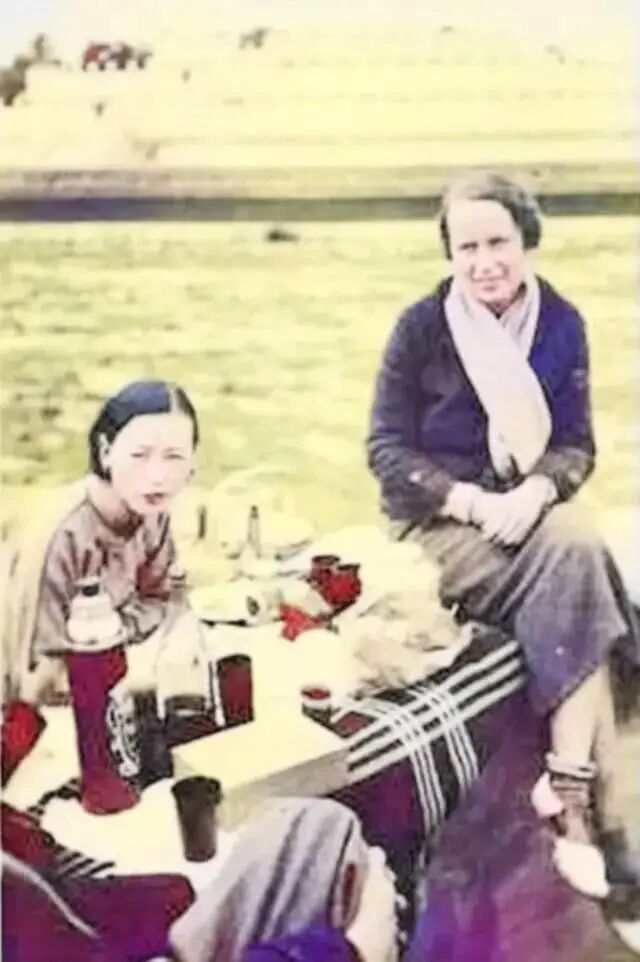 1935年,天坛公园,林徽因与美国闺蜜费慰梅在喝下午茶,桌布、红酒、盒装纸这品味挺高的!