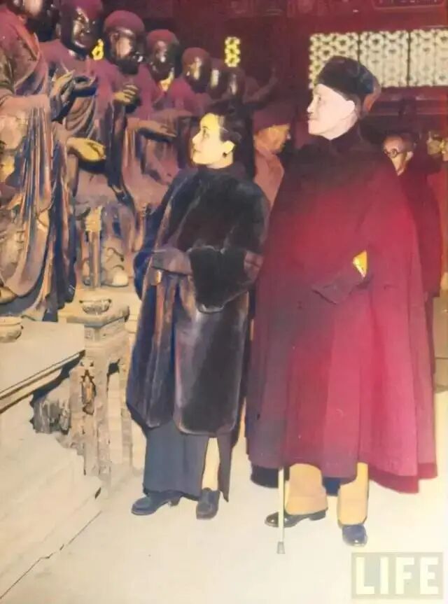 1945年11月,北平,老蒋和宋美玲去碧云寺祭奠中山先生的衣冠冢后,两人又在寺庙里到处看看。