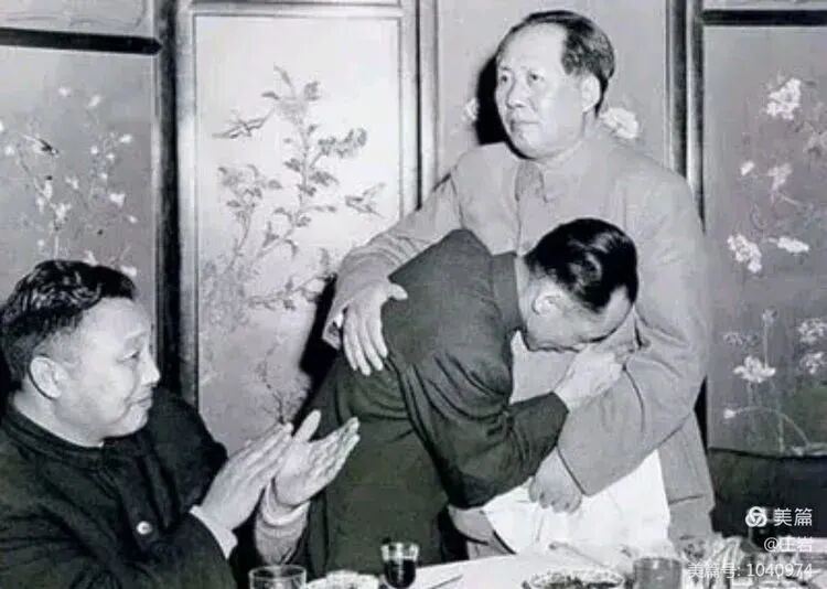 三个人,却只有四条手臂,中间贺龙、左边贺炳炎,右边只抬右臂的叫彭邵辉。