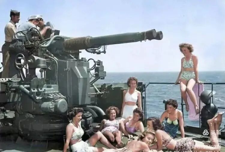 二战结束后,美国陆军的医疗队护士乘坐海岸警卫队部队的军舰返回美国,在甲板上,她们换上了比基尼享受日光浴。