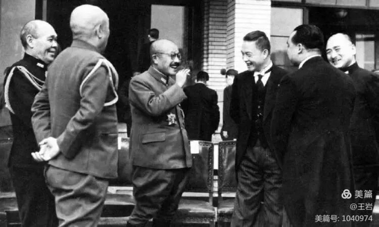 1942年12月,汪精卫前往东京参加大东亚战争一周年纪念会时会见日本首相东条英机。