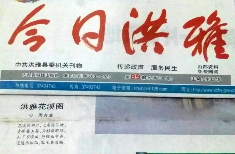 我现在在自己的空间中经常为洪雅的山山水水写诗作词,摄影记录,专门用许多时间为发展洪雅的旅游事业和宣传洪雅的社会环境贡献一点微薄的力量。