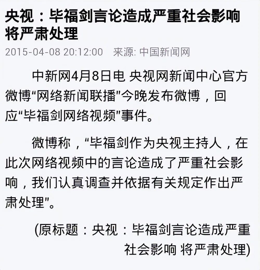 而毕福剑在公开道歉后,离开了他辛苦打拼的央视,消失在了公众的视线中。