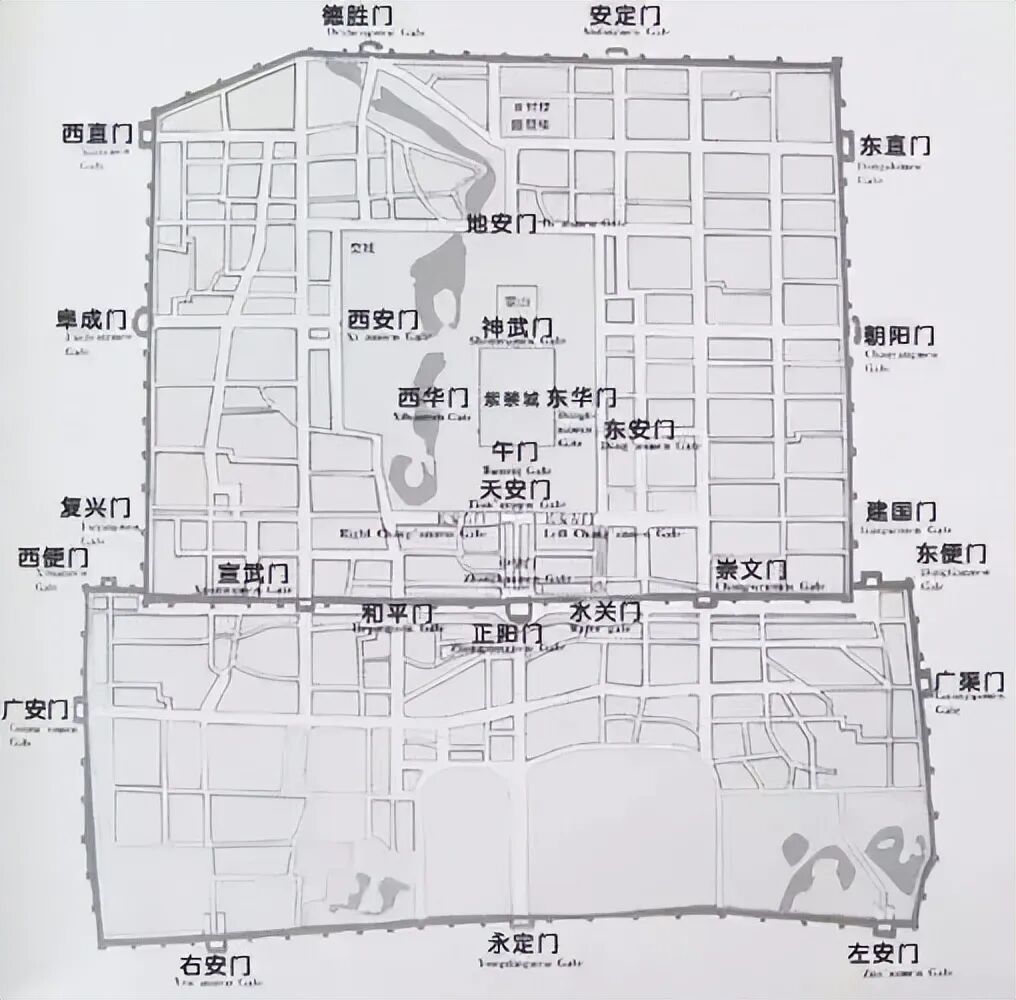 大家首先通过下面这张图了解全部城门的位置。然后,我按照“内九外七皇四”这个顺序简单介绍一下它们。