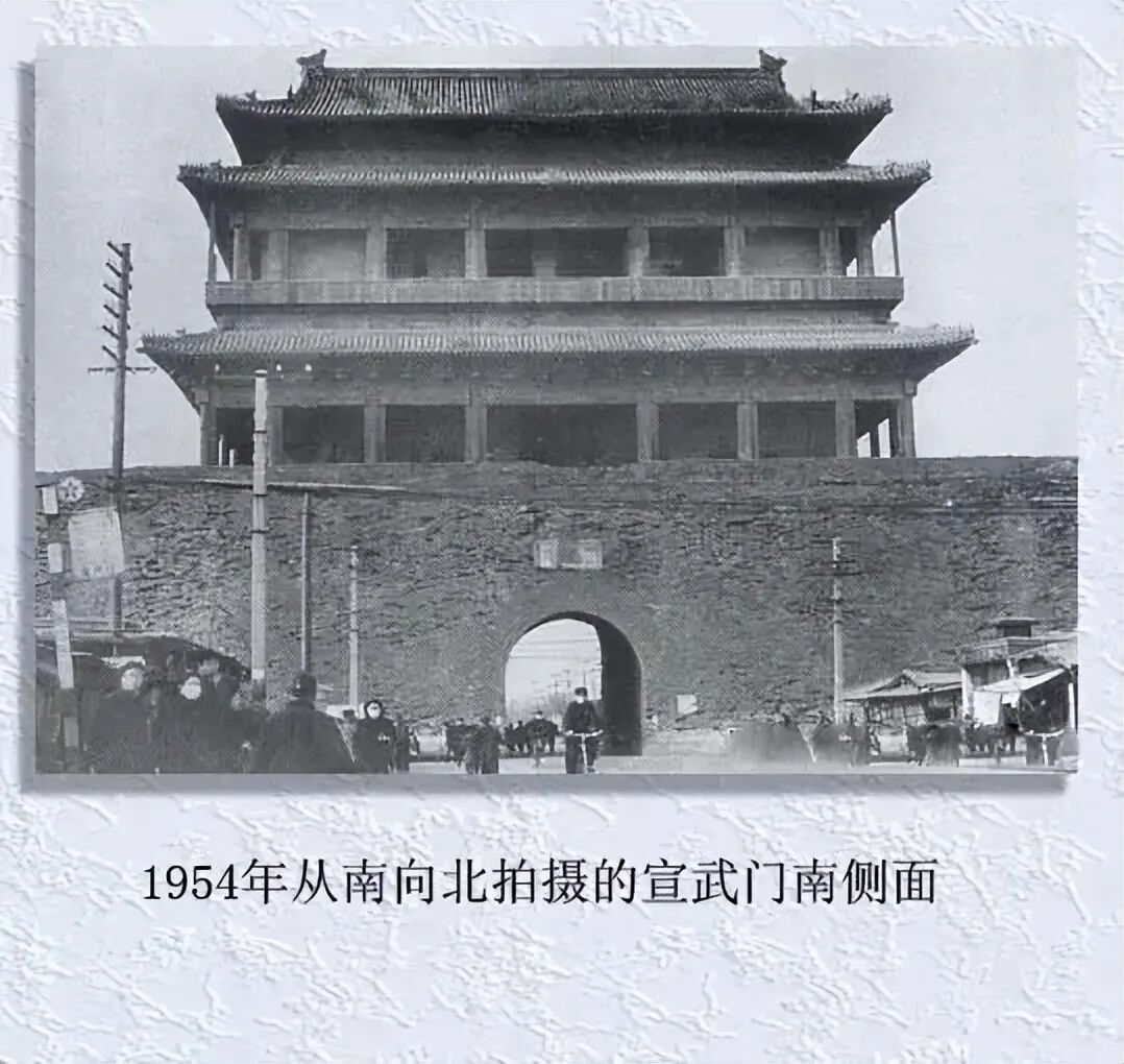 右安门,1956年拆除箭楼、城台及瓮城,1958年又将城楼拆除。