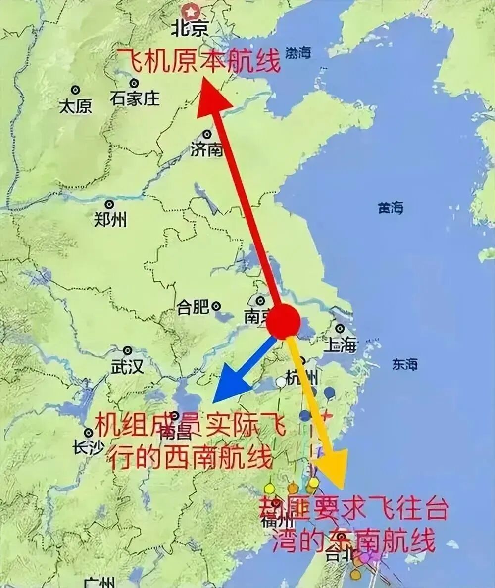 全都不许动,现在立刻改变航线,将飞机飞向台湾,不要出声,否则我就跟你们同归于尽。