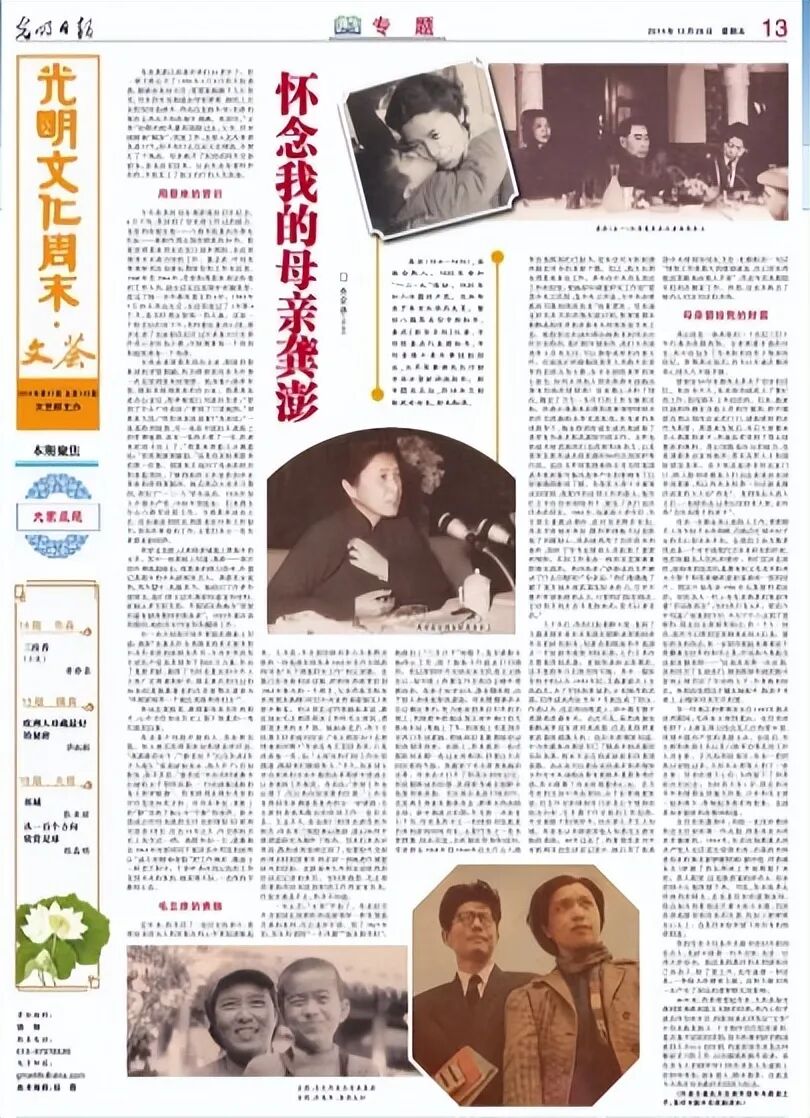 我的母亲不仅是中共最早的对外新闻发言人,是新中国第一代外交家,也是一位伟大的母亲。她总是把最好的东西留给自己的孩子,除了爱之外,还传递着一种信息,一种强大的精神力量。这种力量对我一生产生了深远的潜移默化的影响。