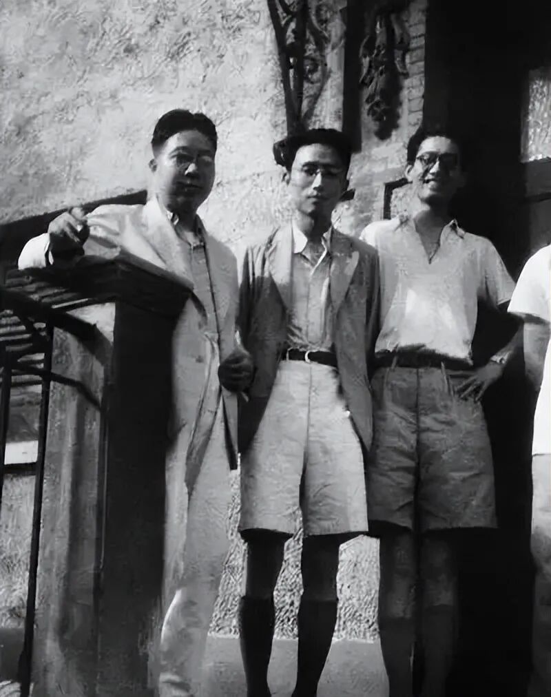 1946年7月,冯宾符(左)、郑森禹(中)、乔冠华在上海中共代表团办事处合影