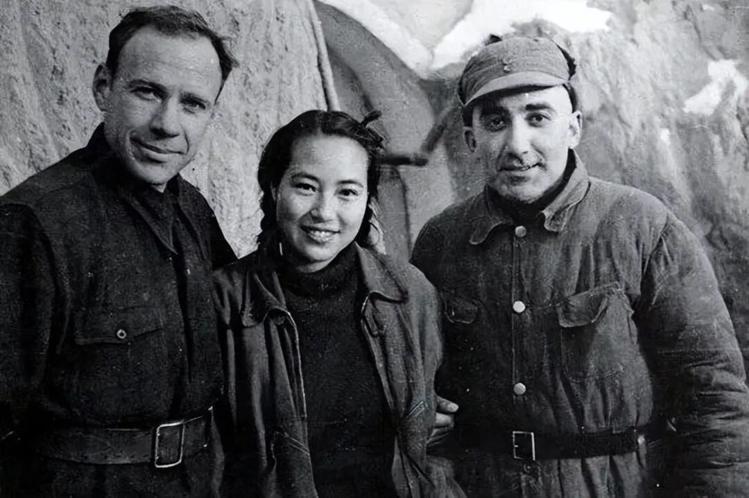 马海德(右)、苏菲(中)、阿洛夫(苏联医生)