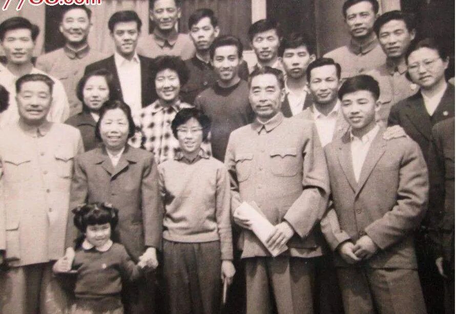 前排左二起为郭小川、傅其芳、徐寅生、李富荣,后三为庄则栋