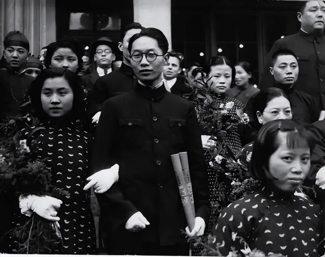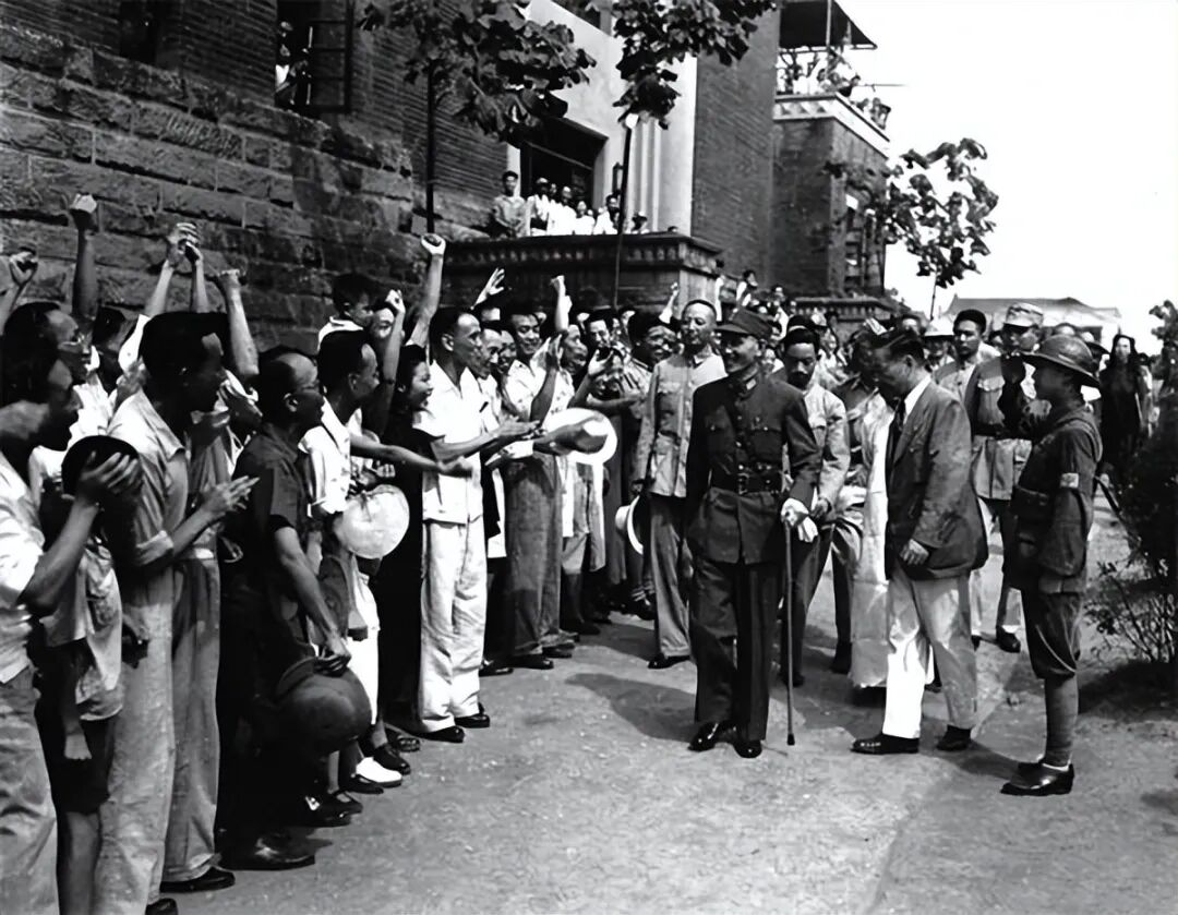 1945年,日本投降后,蒋介石在重庆街头受到人民夹道欢迎。
