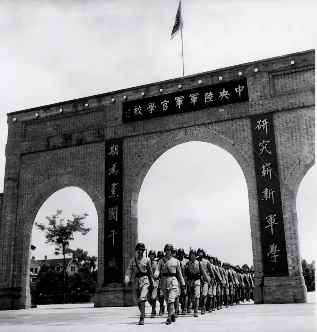 中央军校 (黄埔军校) ——中国的 “西点”。学员们步操穿过军校的大门。