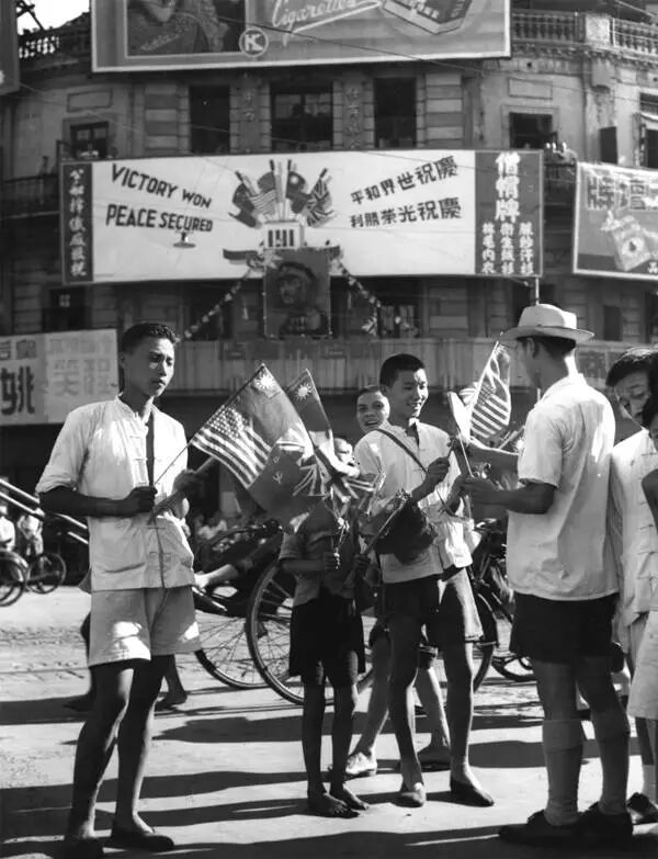 1945年9月5日,上海,中国人在购买小旗庆祝抗战胜利。